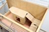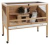 1962年からペット用品を製造するドイツのペット用品ブランド。 幼稚園や学校、保育所でもオススメの室内でも屋外でも使えるラビットケージです。 正面とサイドには敷き詰めた藁などが飛び散らないようにプレキシガラスがついています。 そのため中のうさぎちゃんなどの様子がよく見えます。 お掃除しやすいように高さ3cmの引き出しがついていて、 天井部分も大きくオープンできます。 移動が簡単にできるようにロック付きキャスターがついています。 サイズ: 115 x 60 x 92,5 cm