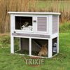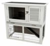 ※同梱不可 ドイツの有名ブランド!トリクシーは世界中で販売されている人気ブランドです。 2階建てのラビットケージです。 艶出しされた松を使用しています。 屋外の悪天候でも耐えれるようにアスファルト屋根になっていて天井はオープンできます。 2階部分は寝室とリビング。1階は雨をしのげるサークルで囲まれた遊び場になります。 1階と2階への往来はスロープで移動できますが使用しないときははしごを2階部分に収納可能。 お掃除しやすいように引き出し式の板がついています。 ハッチ部分はロック可能。 背面部分には換気を調節できる窓がついています。 網の間隔は2cm