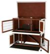 ※同梱不可 ドイツの有名ブランド!トリクシーは世界中で販売されている人気ブランドです。 2階建ての色合いがかわいいラビットケージです。 艶出しされた松を使用しています。 屋外の悪天候でも耐えれるようにアスファルト屋根になっていて天井はフルオープンできます。 1階、2階部分はそれぞれ寝室とリビングで1階と2階への往来はスロープで移動できますが使用しないときははしごを2階部分に収納可能。 お掃除しやすいように引き出し式の板がついています。 ハッチ部分はロック可能。 網の間隔は2cm