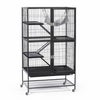 この 2 階建ての家には、2 階建てのフェレット スタックには、ソフト ハンモック、プラスチック製のスロープとプラットフォームが含まれており、取り外し可能なグリル、引き出し式ゴミトレイ、統合された収納棚、簡単に回転できるキャスターが特徴です。