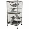 【WARE MANUFACTURING】アメリカで人気のペットメーカー! 太いフレームで囲まれたしっかりしたフェレットちゃん用ホームです。 2階建てで従来のフェレットホームよりもよりスリムなサイズになりました。 高層マンションのような最大3段のステージになっていて多頭飼いにもピッタリです。 正面上下に2個ドアがついています。 ハンモック、ステージ、スロープも付いていて遊び好きのフェレットちゃんにはたまらない空間です。 ケージの一番下には引き出し式の底板がついていてお掃除も楽々!キャスター付きなので移動も楽々。 正面に大きなドアがついていて出入りも楽々! ■サイズ:横52×奥行52×高さ113.7cm
