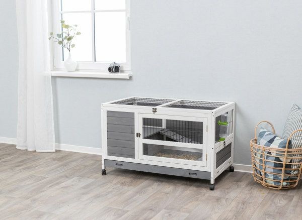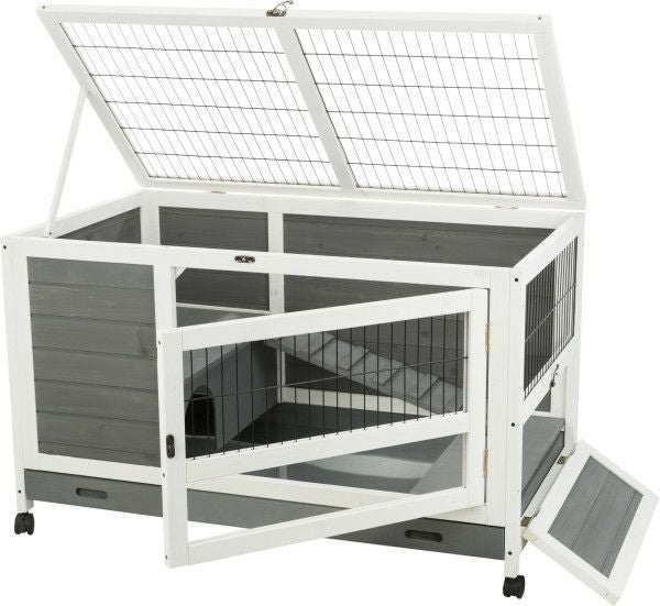 体格の良いモルモットには、横幅のあるフラットなケージを。排泄量が多い生体に合わせて、丸洗い可能な底トレイや大容量の牧草フィーダーをセレクトしています。
