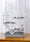シカゴ発150年以上の歴史をもつ信頼のペットメーカー!スモールアニマル用ケージ。ハムスターやスナネズミのための豪華な4階建ての家です。 クワッドレベルのケージは、健康的な活動のための多くのオプションを提供すると同時に、地上で探索したり隠れたり、遊んだりというペットの自然な本能を満たします。 マルチカラーコンポーネントには、ケージの両側に1つずつ、2つのトンネル通路、2つのエクササイズホイール、居心地の良い隠れ家、3つの滑り止めランプ、3つのテクスチャ付き滑り止め可動プラットフォームが含まれます。 2つのアクセスポイントを備えたこのハムスターとスナネズミのケージには、1つの正面玄関と1つの上部開口部の扉があります。 グレーとカラーコーディネートされたアクセサリーの色合いを視覚的に取り入れてます。