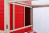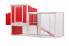 この小屋は、換気装置が組み込まれた2つのレベルの居住空間、簡単に採卵できるヒンジ付きのふた付きの1つのコンパートメントの巣箱、2つのねぐらバー、掃除が簡単な亜鉛メッキの引き出しトレイを備えています。