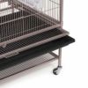 シカゴ発150年以上の歴史をもつ信頼のペットメーカー!頑丈な鉄でできた鳥ケージです。新発売のスタンド付の大型バードケージです。複数のインコ、カナリアやフィンチのため設計されたケージです。2つの大きなフロントドアと下部シェルフが装備されたこの鳥かごは、ローリングキャスターがついていて部屋から部屋に簡単に移動できます。 4つのプラスチック製のダブルカップと3つの止まり木がセットになっています。 底の引き出しは取り外して水洗い可能。 画像のおもちゃはついていません。 ■サイズ:Overall Size 78.7 L x 52 W x 134.6 H cm Interior Space 76.8 L x 51.4 W x 101.6 H cm