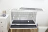 1962年からペット用品を製造するドイツのペット用品ブランド。 ソリッドウッド(コウヨウザン)保護木でできています。 屋根部分は取り外し可能。 スタンドは別売り 下部:ごみの引き出し、 バー:2ミリメートル〓ラウンド、黒、;バー14ミリメートルの距離 側面開口10×13センチメートル (水浴び用) 天気防音アスファルト屋根 前面開口部:20×23センチメートル 付属品:木製の止まり木2×〓10ミリメートル、2×〓12ミリメートル サイズ:100 x 50 x 60 cm