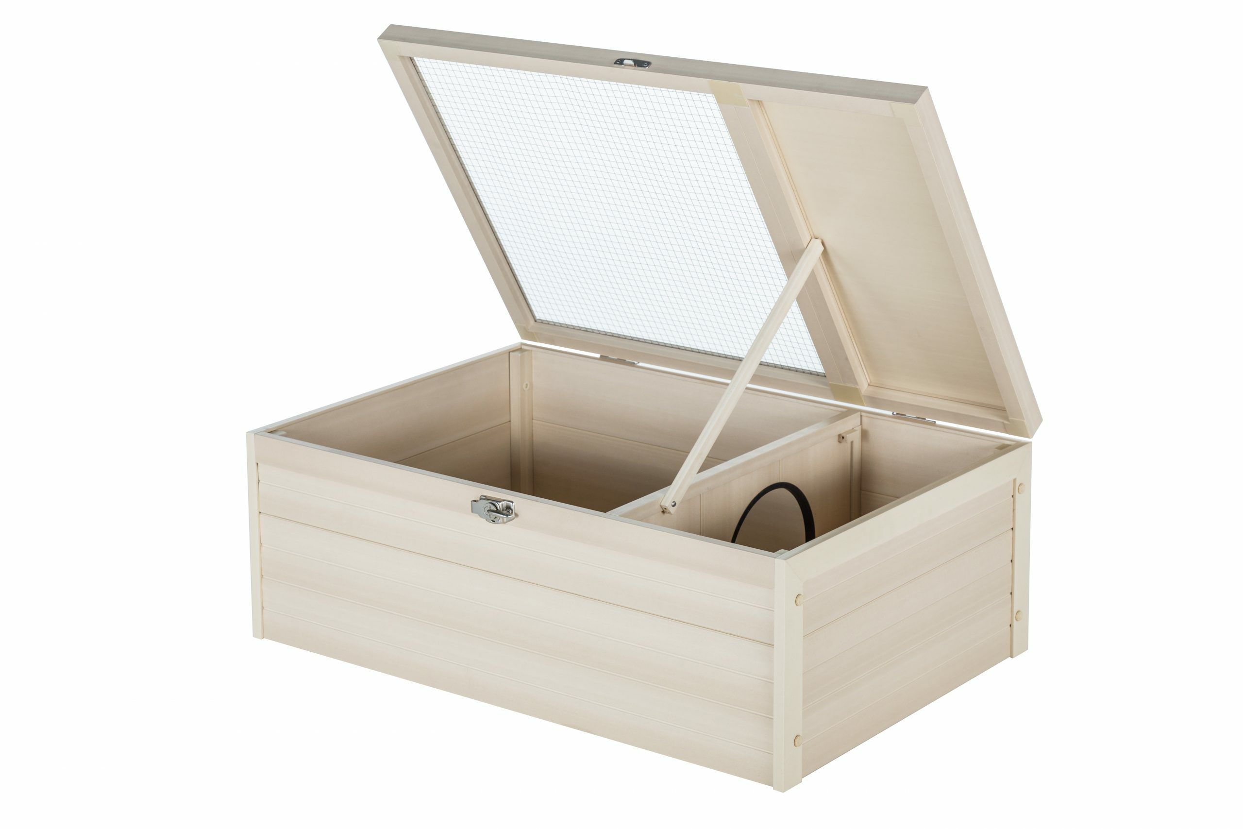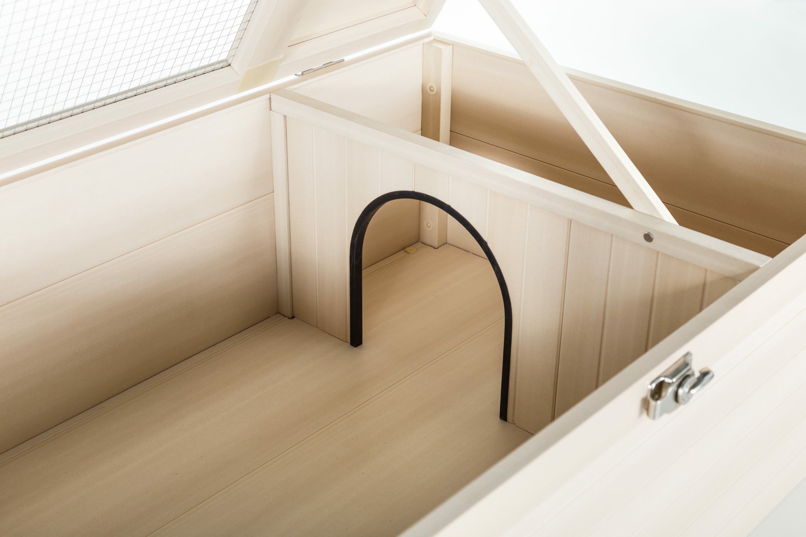 ecoFlexとはリサイクルポリマーと木をブレンドして作られたエコ素材で、その特徴は全天候型(気温と湿度の変化に対応)、腐敗しにくい(腐りにくい)虫が寄ってきにくい、常に形状が安定しているという特徴があります。またねじれにくい、曲がりにくい、ひびが入りにくいなど様々な特徴があり、中のペットを傷つけることがありません。